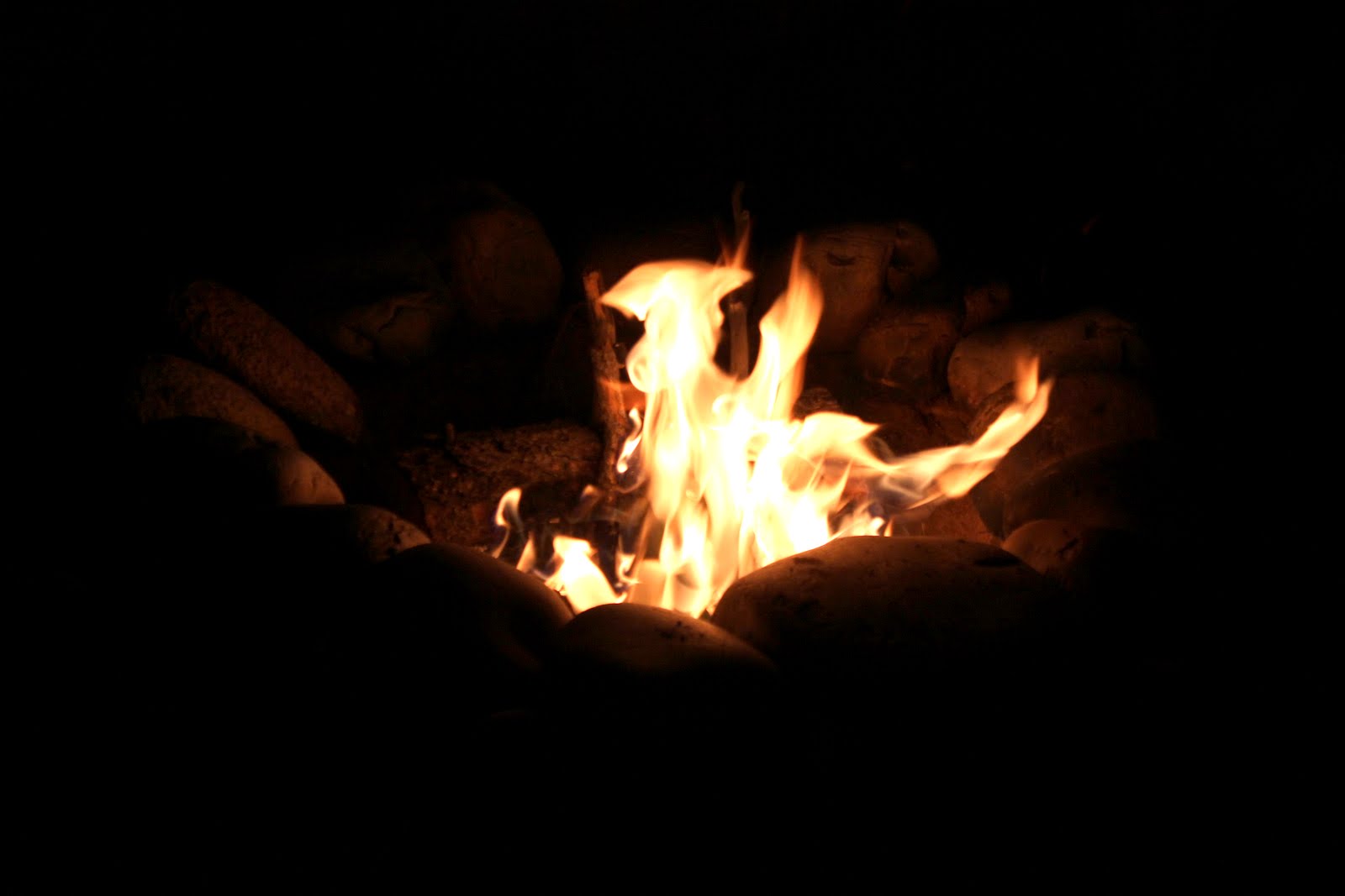 I sit in silence before the fire pit. It is darkness now at my campsite. I say darkness rather than nighttime, because when you have lived your life in the city as I have, nighttime refers to a certain period of ease and comfort after the day is done. Sure, in the city the sky darkens, cools, hunches low to the ground just as it does out here. But it is a relaxed, easily-lit night, a restful intermission between periods of productivity. And of course, you are assured that nighttime is safe. That the darkness that subsumed the sky is only a formality; a nod to less modernized times, perhaps. Your burglar alarm is cocked, your heater shields you from the cold, and the paneled lights of Denny’s and Wal-Mart go on humming into the night, prepared to save you should tonight be the night you need saving. Indeed, in the city the dark is snuffed out, with the gentle glow of nighttime inserted in its place.